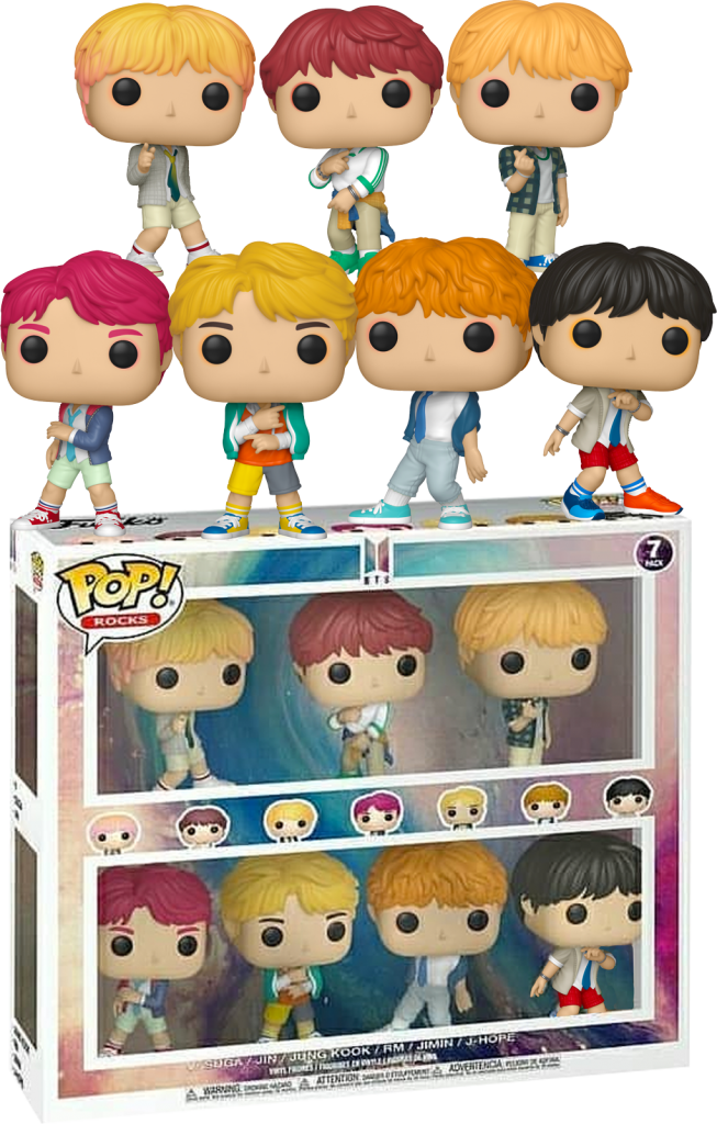 Los siete miembros del grupo contarán con su versión Funko Pop! La fecha estimada para su lanzamiento comercial, será aproximadamente en mayo de este año. Además, tendremos disponible un pack con las 7 figuras.